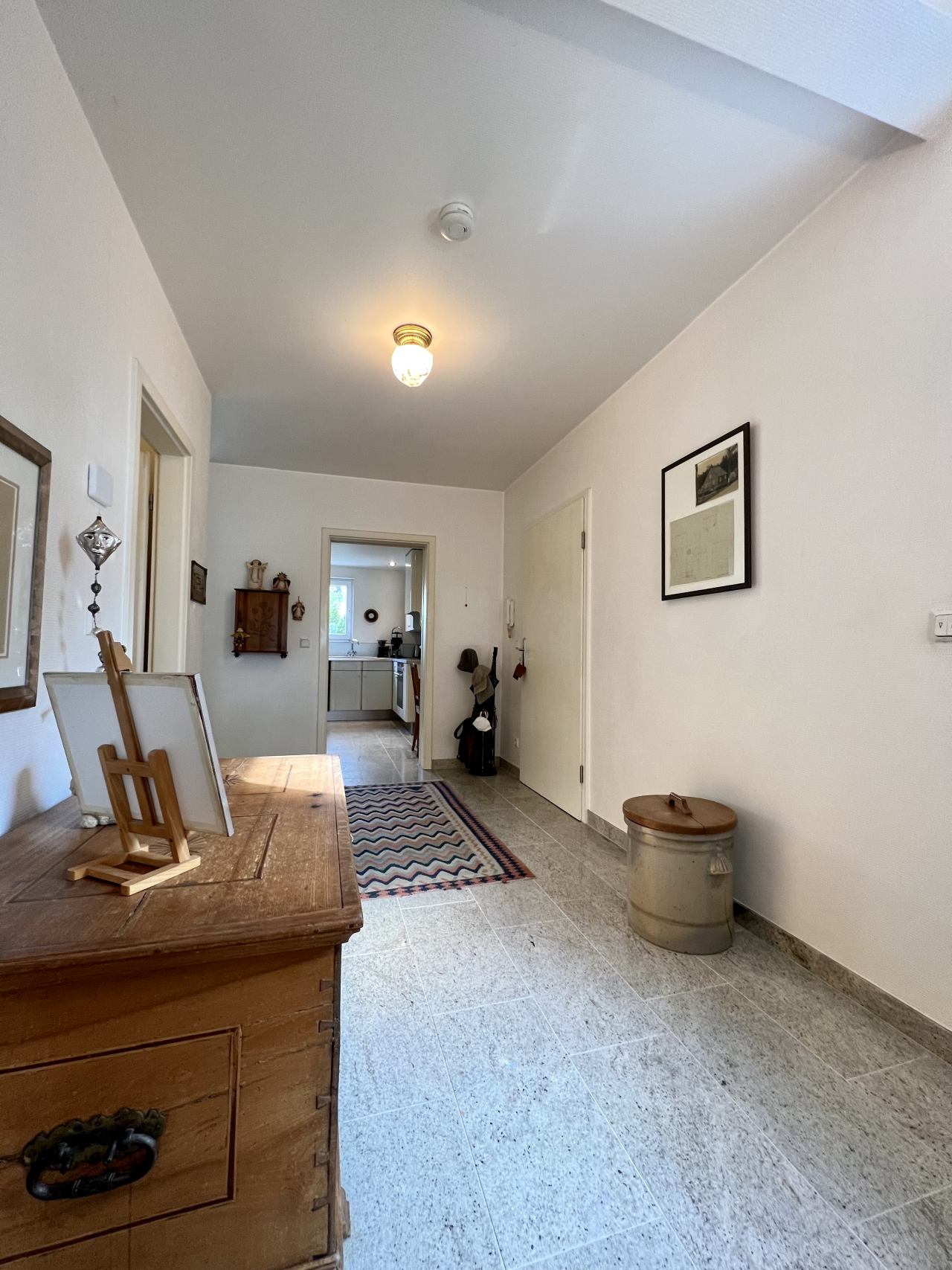 Die sehr helle und großzügig aufgeteilte Wohnung ist mit einem hochwertigen Granitboden ausgestattet. Der Naturstein Kaschmir White bringt Eleganz in jede Räumlichkeit.